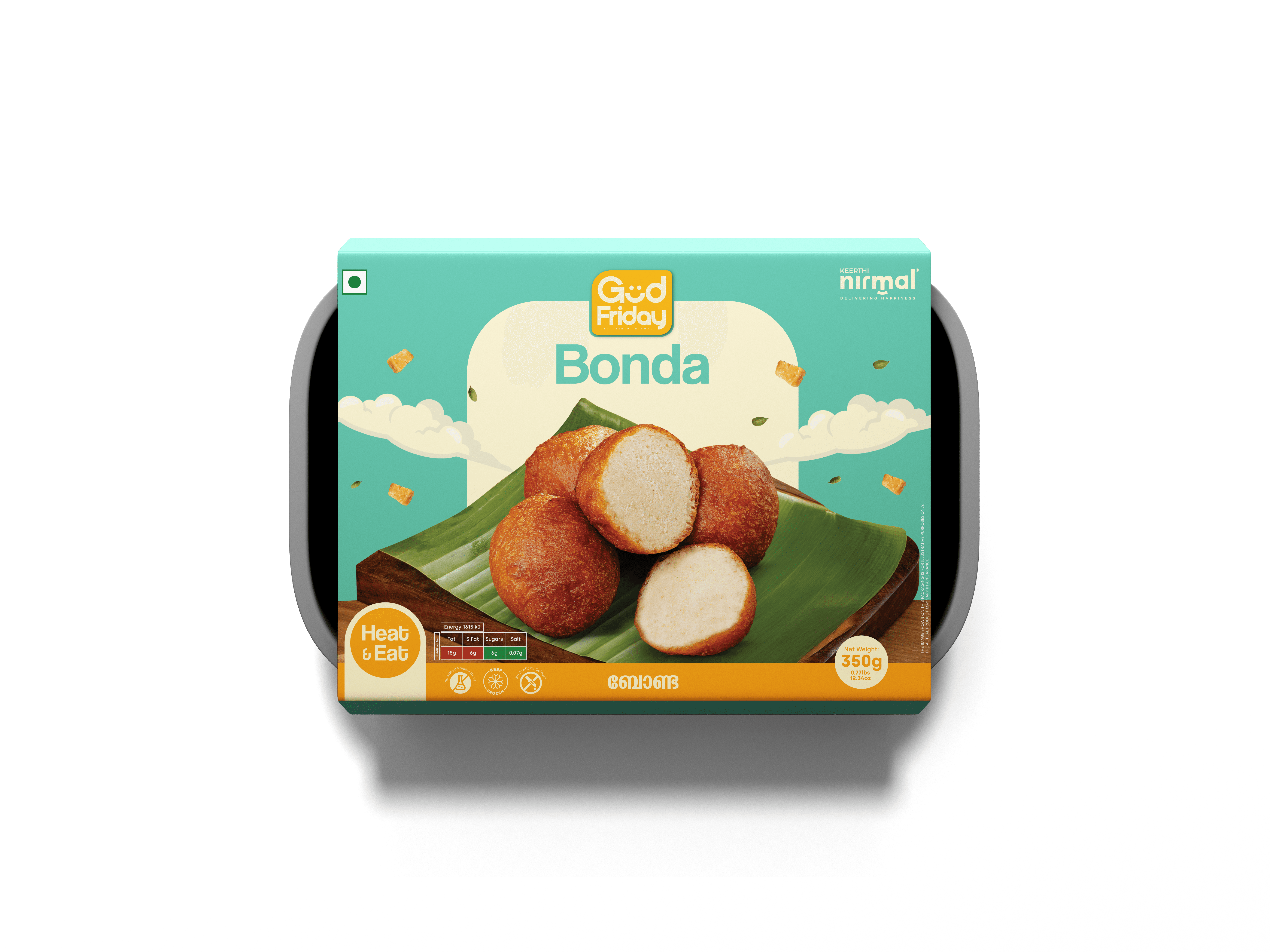 Preheat the oven to 375°F (190°C). Place the thawed Bonda/Undan Pori on a baking sheet lined with parchment paper. Bake for 5-7 minutes, or until heated through and crispy.
