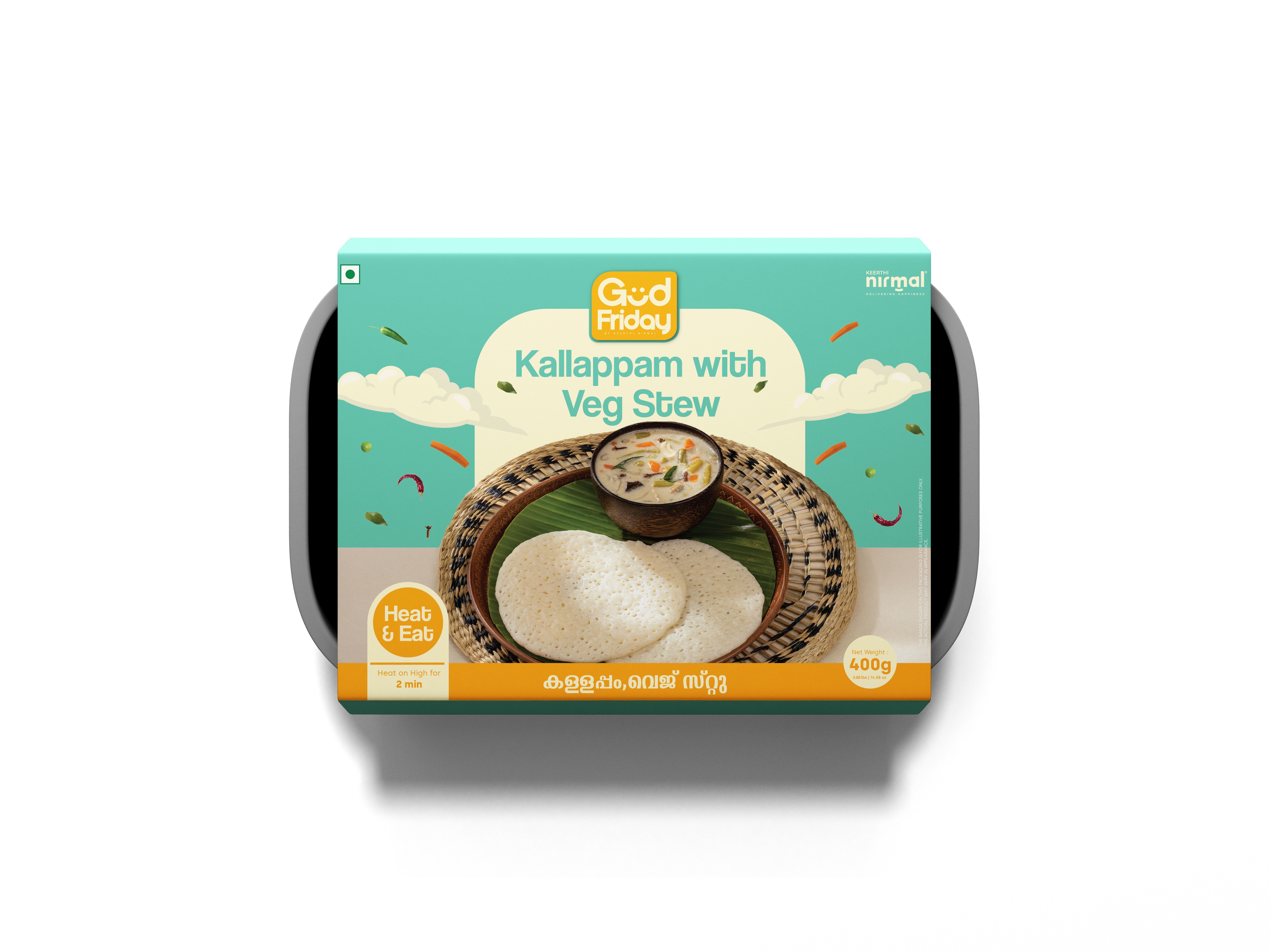 Preheat the oven to 350°F (180°C). Place the thawed Idiyappam with Vegetable Kurma in a covered dish. Reheat for 5-7 minutes, or until hot and steaming.