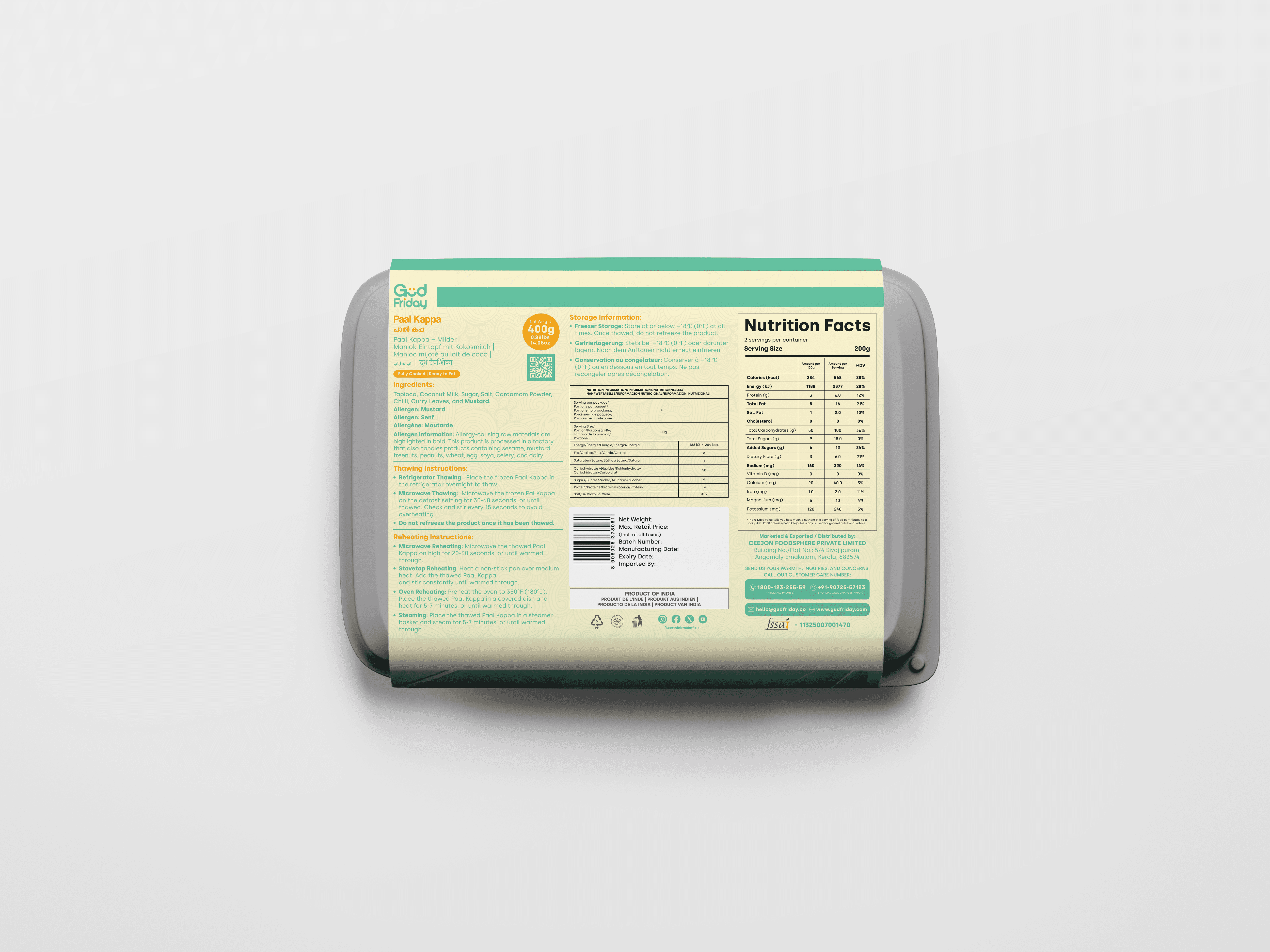 Preheat the oven to 350°F (180°C). Place the thawed Paal Kappa in a covered dish and heat for 5-7 minutes, or until warmed through.