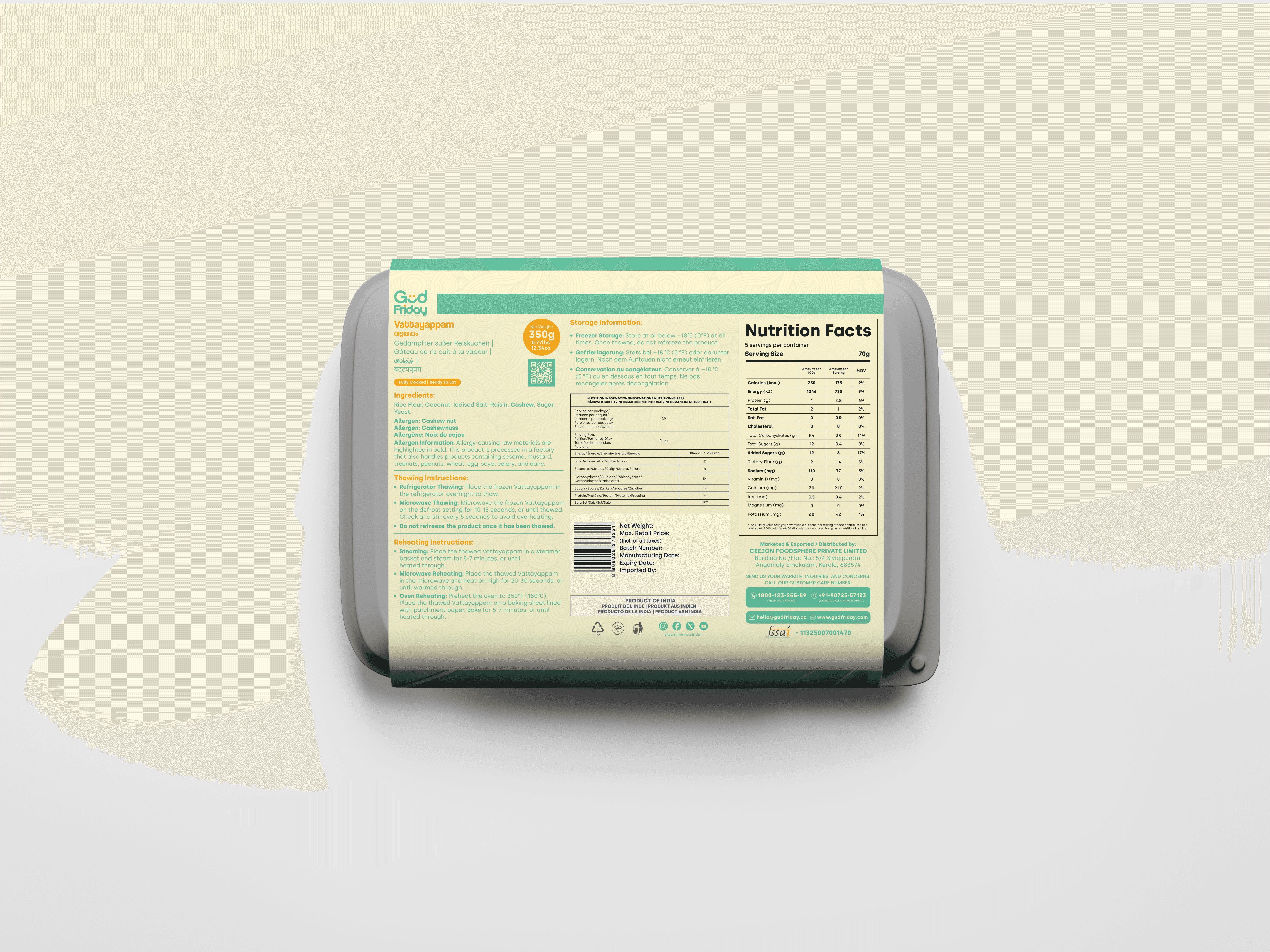 Place the thawed Vattayappam in a steamer basket and steam for 5-7 minutes, or until heated through